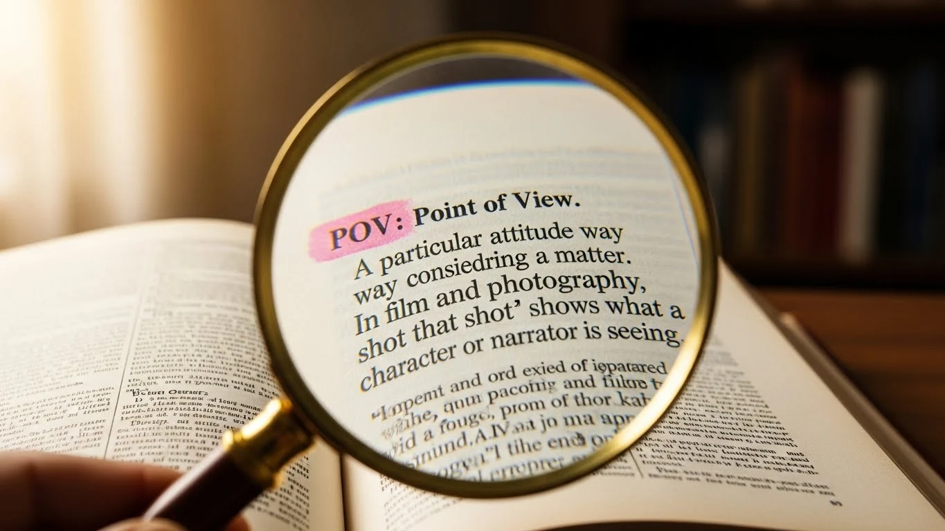 POV simply means “Point of View.” It’s a versatile term that has grown beyond writing and filmmaking into texting, social media, and casual slang.